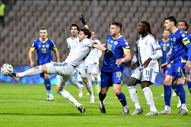 Lo stadio è incandescente, Gattuso si gioca l’ultimo cambio mandando Frattesi a rilevare Barella. Donnarumma deve salvare all’87’ su un colpo di testa di Demirovic. Supplementari, esce Dimarco ed entra Spinazzola. La Bosnia continua ad attaccare, eppure alla fine del primo tempo l’Italia ci crede ancora. Al 102′ Muharemovic ferma fallosamente Palestra lanciato verso la porta. Giallo e punizione dal limite, che Tonali manda sulla barriera. Qualche secondo e ancora Palestra imbecca Esposito, che di testa a colpo sicuro trova Vasilj a sbarrargli la strada. Esposito ci riprova in avvio di secondo tempo, ma la palla gli viene deviata in angolo. L’ultimo brivido nel recupero del secondo tempo supplementare, quando Frattesi atterra Dzeko che cercava l’ultima occasione.