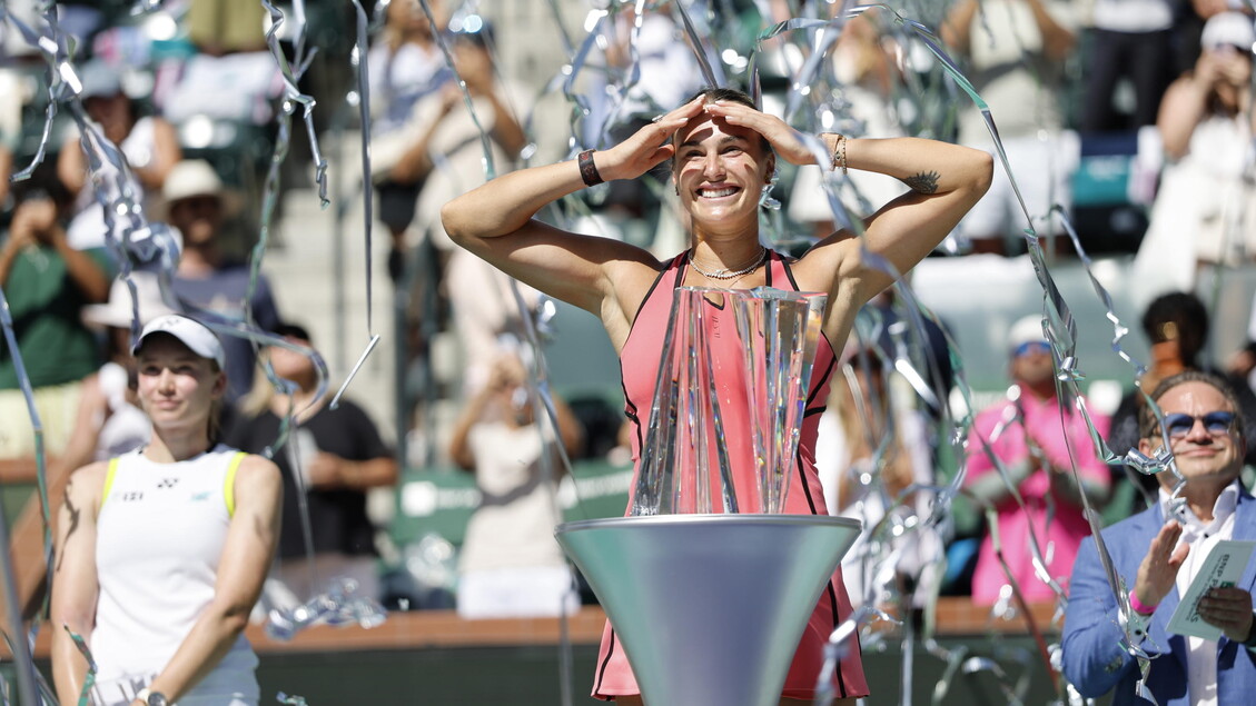 Aryna Sabalenka vince il torneo Wta 1000 di Indian Wells. La bielorussa, numero 1 al mondo, ha superato Elena Rybakina con il punteggio di 3-6 6-3 7-6 al termine di un terzo set combattuto punto per punto fino all’epilogo al tie-break finito 8-6.